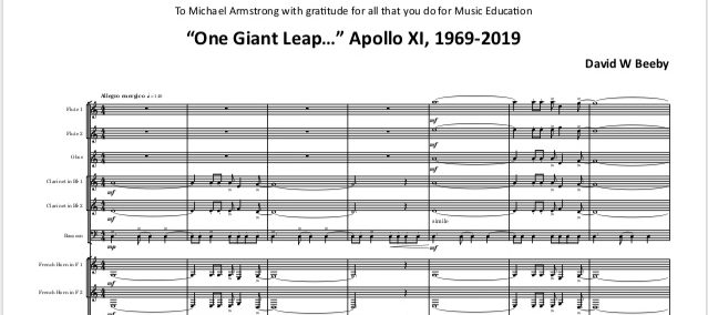 David’s orchestral piece “One Giant Leap…” is a large-scale piece written to commemorate the 50th anniversary of the first moon landing by Apollo XI in July 1969. The music was commissioned by Michael Armstrong (no relation to Neil!) and the Music Education Agency “SoundStorm” and first performed in a Festival at Upton House, Poole in July 2019. Another performance, marking the 55th anniversary, took place in May 2024, in a concert given by the Westbourne Orchestra. David’s music was in good company – performed alongside John Williams’ ‘Star Wars’ Suite and Gustavia Holst’s ‘Planets’ Suite!